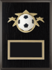 Three stars hold a three-dimensional soccer ball, with space for your message on a plate below. Metal plates come in a variety of colours; customize with your team colours.