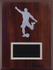 This plaque features a silver soccer player silhouette. Customize with your choice of colour for the engraving plate, or put your artwork in colour.