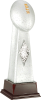 Celebrate the victories of your athletes or use this award for a fantasy football league. The silver ceramic football with gold laces is held aloft by a four-sided silver column on a rosewood base. 21 1/2" H