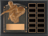 Laminate 9" x 12" plaque includes 12 annual shields and a 6" x 8" Legends of Fame gold tone baseball player on a stone coloured background.