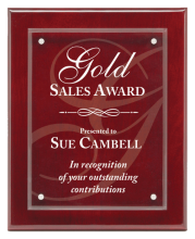 This modern plaque combines an acrylic plate with a piano finish plaque, using magnetic stand-offs.