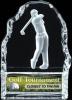 This 4 1/4" high clear glass iceberg shows the image of a male golfer, with room for a personalized plate below.