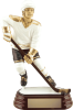 This resin trophy features a male hockey player with gold accents on a rosewood coloured base.