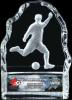 This 4 1/4" high clear glass iceberg shows the image of a male soccer player, with room for a personalized plate below.