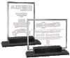 A classic Glass award. A clear rectangle that can go either horizontal or vertical. This award sits on a granite base.