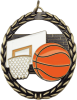 The colourful Negative Space Basketball medal depicts a basketball net and ball surrounded by a wreath.