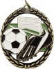 The colourful Negative Space Soccer medal depicts a soccer net with a cleat and soccer ball in the foreground, surrounded by a wreath.