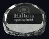 This paperweight has gemlike facets to reflect the light and show the beauty of the optic crystal. Size of paperweight is 1 3/8" x 2 3/4" diameter.
