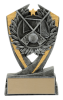 This 6" pewter and gold resin shows a laurel surrounding two broomball sticks, a ball and net.