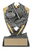 This 6" pewter and gold resin shows a laurel surrounding a curling rock and broom.