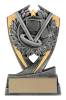 This 6" pewter and gold resin shows a laurel surrounding a backdrop of a net with ringette sticks fighting over the ringette.