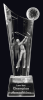 A 3D male golfer is featured within optic crystal, which has a curved top. At the edge of the curve teters a crystal golf ball, just waiting to sink into the hole. Award comes in a satin lined presentation box.