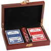 This classy rosewood box makes a great gift for gamblers, card players, or groomsmen. Card and dice are included.  The inside of the box has a black felt lining.
