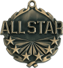 1 3/4" Sculptured medal shows a 3D "All Star" above 6 shooting stars.