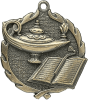 3D Sculptured Lamp of Knowledge medal depicting a lamp of knowledge and an open book.