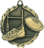 1 3/4" 3D Sculptured Rugby medal depicting a rugby ball, field and cleat.