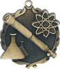1 3/4" 3D Sculptured Science medal depicting a telescope, flasks and atomic model.