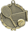 3D Sculptured Tennis medal depicting a tennis raquet, ball and net.