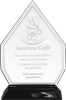 Part of the economical acrylic award series, the clear acrylic diamond shape stands on a black base. Total height is 7 7/8".