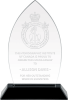 Part of the economical acrylic award series, the curved clear acrylic comes to a peak at the top and stands on a black base. Total height is 7 1/4".