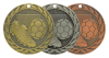 The 2" soccer iron sculptured medal depicts a cleat, soccer ball and net.