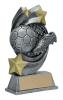 This 5 3/4" pewter resin trophy features three gold stars swirled around a soccer ball and cleat.