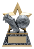The 6" Rockstar resin series features an antique pewter finish and metallic gold accents. This Soccer Rockstar Resin depicts a cleet and soccerball and a gold star.