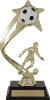A gold star holds a full colour soccer ball above a gold soccer player on a black base. Male and female figures available. Trophy is 10" in height.