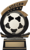 Stars and gold accents highlight the central 3-dimensional soccer ball in this 7" resin sport trophy.