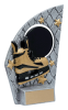 This pewter finished resin trophy features a hockey net backdrop adorned with a hockey puck with a gold and black hockey skate. Hockey puck area will accept a 2" mylar; standard mylar included for free. See here for mylar options, or further customize the award by having us create a custom mylar insert for an additional charge.