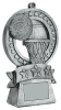 A ring of stars surrounds a basketball and net in this pewter-coloured resin trophy.