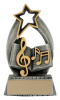 This pewter and gold Starlight resin music trophy has a star outline at the top to compliment the book and music symbols.