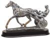 This pewter trophy with gold trimming depicts a sulky rider. This trophy sits on a black base and stands at 14" high and 10" wide.