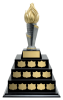 This 17 1/2" Annual Trophy features a resin flaming torch tower mounted on a 3 tier base.