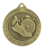 This modern 2" medal displays a stopwatch and track shoe. Available in antique gold, antique silver, and antique bronze.