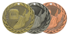 The 2" track iron sculptured medal depicts a cleat and stopwatch.