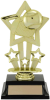 Part of the trinity series awards, this gold 7" trophy features a baseball surrounded by one big star and three smaller stars.