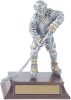This resin trophy features a pewter and gold female hockey player on a rosewood-coloured base.