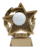 A gold star is the backdrop for a net and white volleyball. 5" height