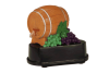 A wine barrell and colourful grapes sit on a black base. 5 1/4" H