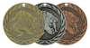 The 2" wrestling iron sculptured medal depicts two wrestlers.