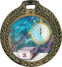 Wreath insert medal holds a 1" mylar insert. A list of available inserts can be found here. Please specify your choice when ordering.