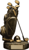Aztec gold 7 1/2" resin trophy with golf bag and club.