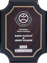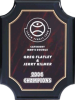 Your personalization shows white on the red or blue marble, with gold trim and a black border on this acrylic plaque. A modern alternative to traditional wood plaques.