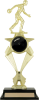 This 12" trophy has a black base and a bowler standing on a gold star riser which holds a black bowling ball.