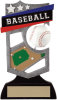 6" resin trophy with black base and shield which holds a baseball that spins. Great for young stars.