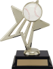 A gold shooting star on a black plastic base holds a full colour three-dimensional baseball.