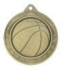 This modern 2" medal displays a basketball accented by stars. Available in antique gold, antique silver, and antique bronze.