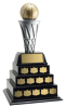 Tired of airball level trophies when you need one worthy of a slam dunk? Look no further! Nothing showcases a winning team or player more beautifully than the World Class annual basketball trophy, featuring a gold basketball sitting upon a pewter basketball net attached to a black base. To see the keeper verisions of this series, please click here.