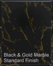 Standard finishes include: Cherrywood, Cherry, Oak, Black Ash, Matte Black, Black & Gold Marble, Charcoal Marble, White Marble, Green Marble, Red Marble, Blue Marble.